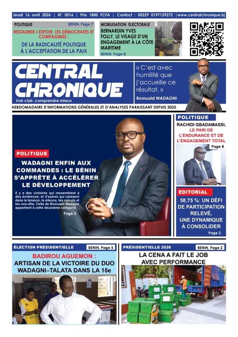 Fondé en 2025 par Aristide KANOUSSOU, Central Chronique est un hebdomadaire indépendant paraissant au Bénin. Dans un paysage médiatique en constante évolution, nous avons choisi une ligne simple mais exigeante : voir clair pour comprendre mieux.
