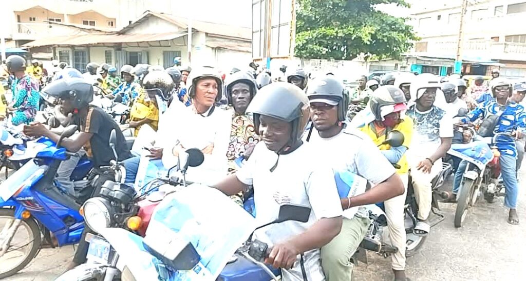 Les images capturées tout au long de la caravane traduisent, avec une éloquence saisissante, l’ampleur de la mobilisation. Ici, des groupes de jeunes, enthousiastes et déterminés, brandissent fièrement les affiches du candidat, comme pour porter haut un espoir collectif. Là, des femmes engagées, actrices incontournables de la dynamique sociale, occupent le devant de la scène avec une présence remarquable. Sur les axes, les conducteurs de taxi-motos, véritables poumons de la mobilité urbaine, s’impliquent massivement, donnant à la procession une intensité populaire indéniable. Et partout, véhicules et tricycles, habillés aux couleurs de la campagne, transforment l’espace urbain en une fresque vivante, où chaque mouvement devient expression d’adhésion et de ferveur politique.